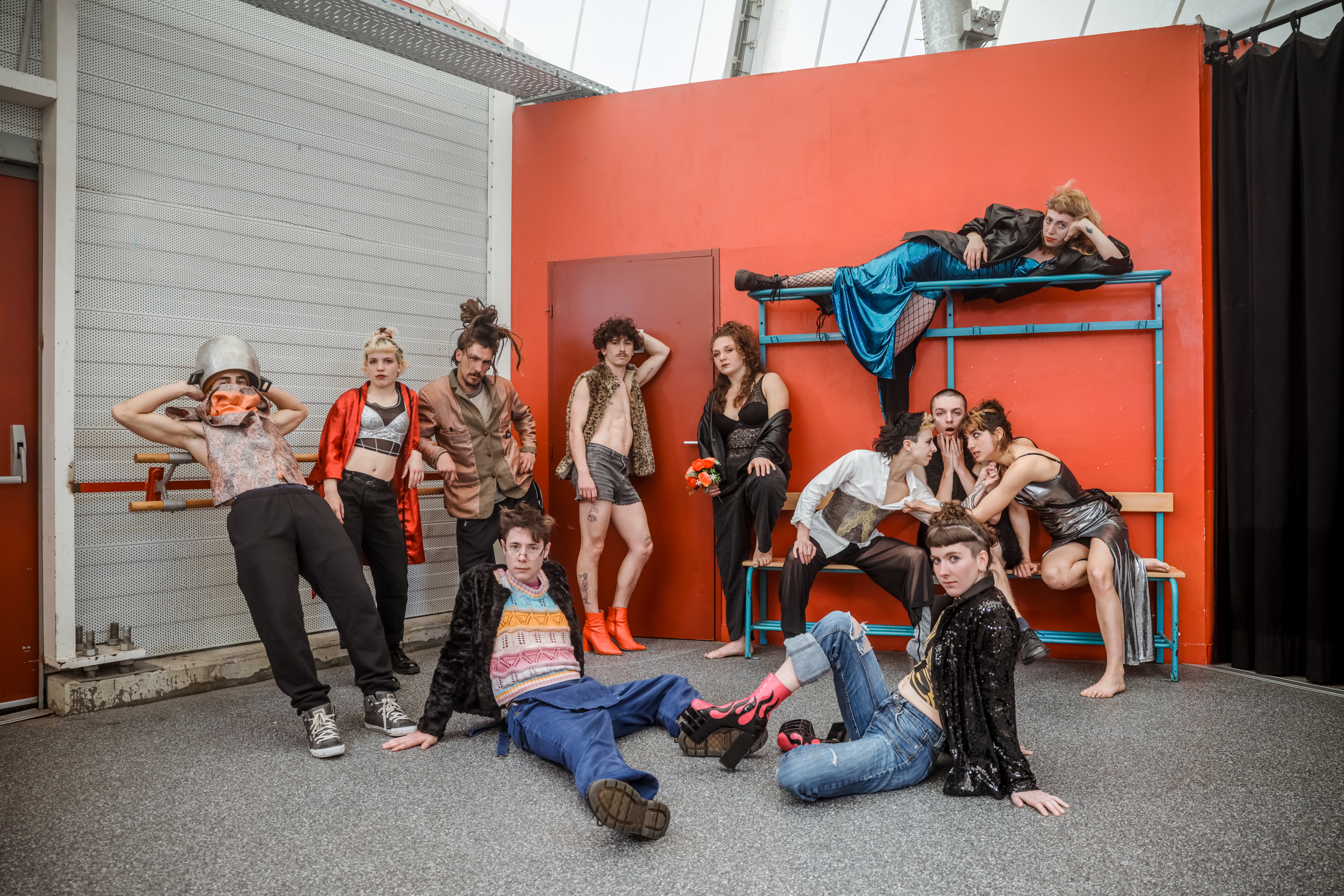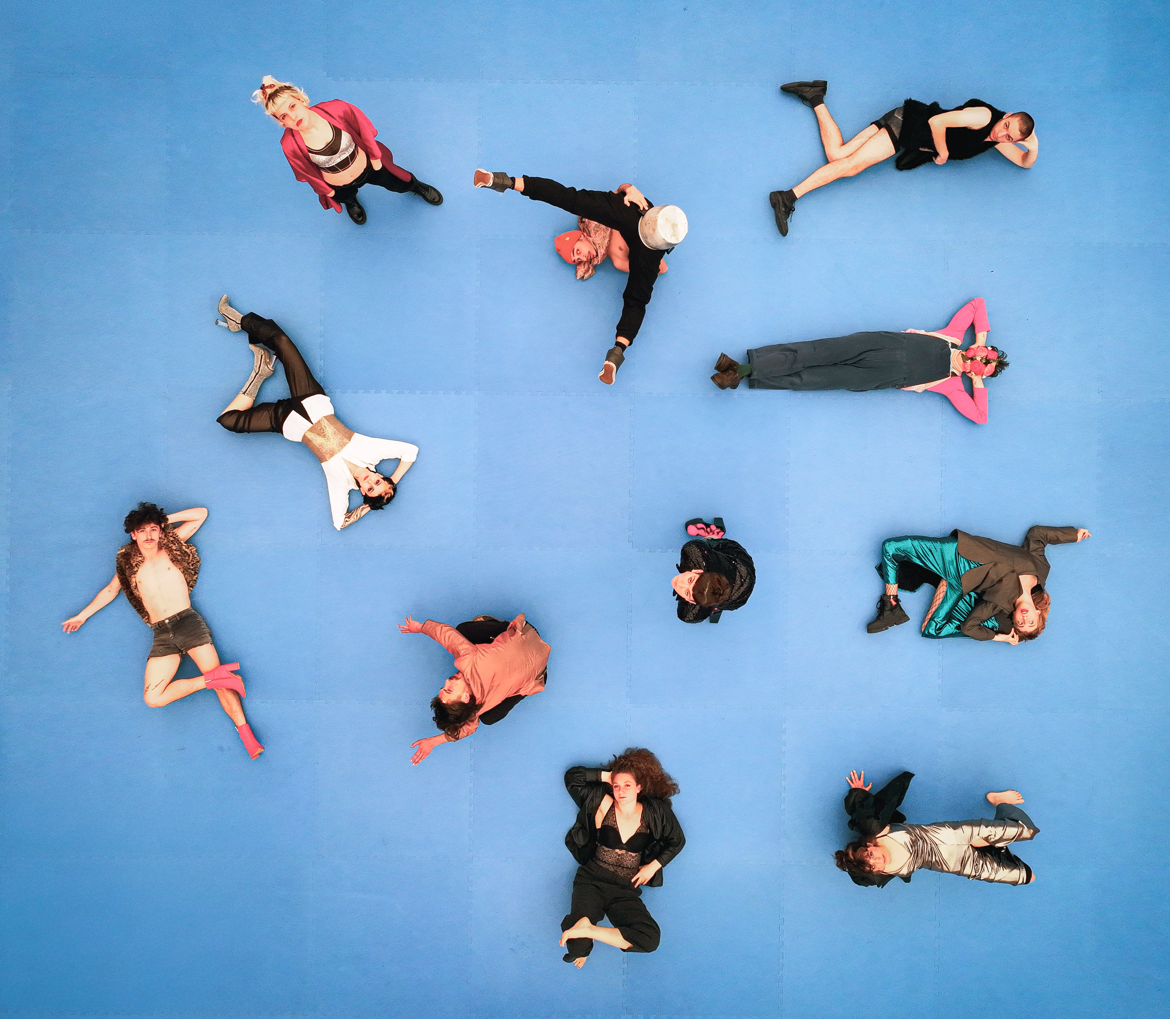 Le shooting s’est construit autour de différentes écritures visuelles : compositions graphiques, mises en scène, instants de mouvement et situations plus spontanées. Les corps deviennent matière, les groupes dessinent des formes, et chaque image joue avec l’équilibre entre structure et liberté.